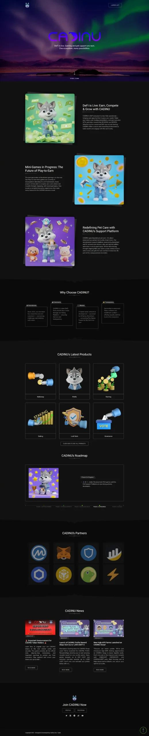 در این پروژه تلاش کردم با بهره گیری از اصول طراحی مدرن و ساختار روان محتوا، حس اعتماد و حرفهای بودن را به بازدید کنندگان منتقل کنم. طراحی لندینگ پیج cadinu نه تنها از لحاظ ظاهری چشم نواز و مینیمال بود، بلکه به صورت کامل با اهداف مارکتینگ پروژه همسو طراحی شد تا نرخ تبدیل بالاتری برای معرفی توکن CADINU ایجاد کند.